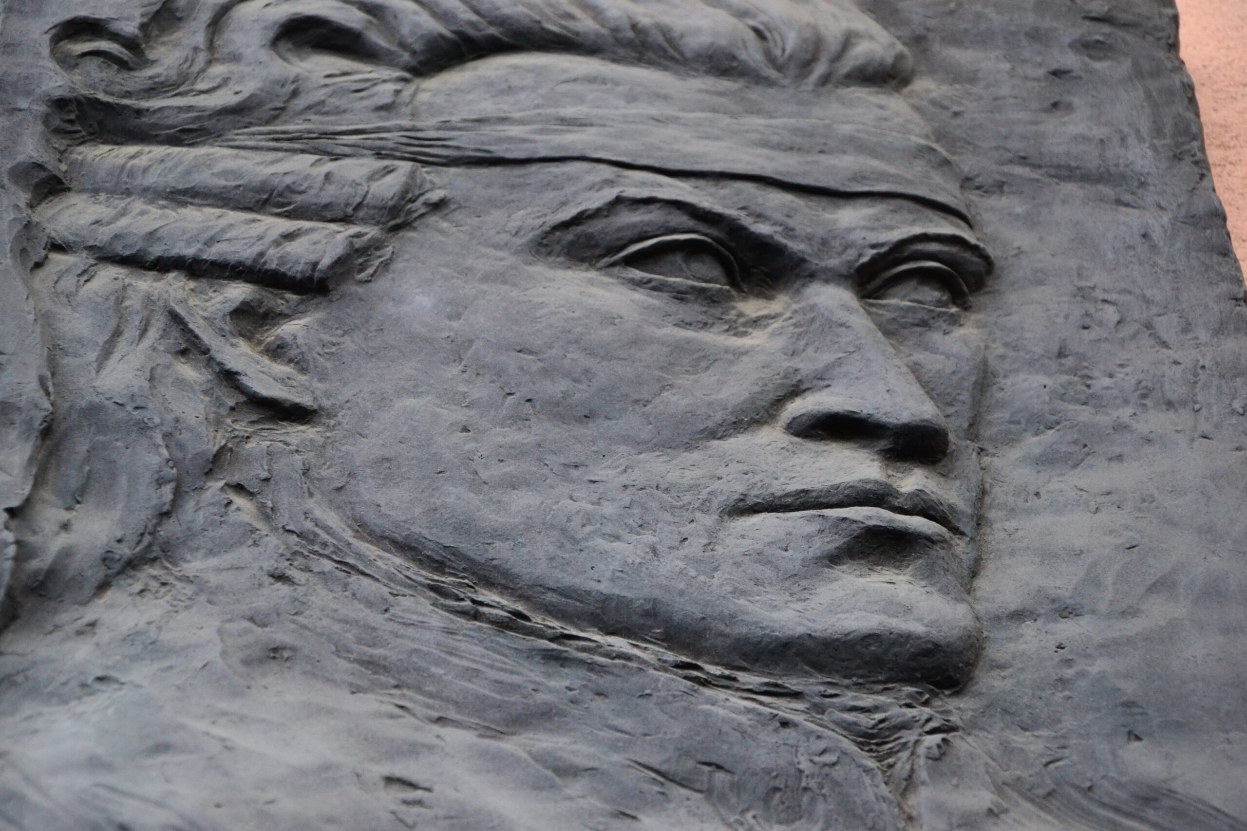 Intill skogen vid Infanterivägen 6, söder om Grenadjärvallen, är minnesmärket i brons placerat med en liten distans ut från berghällen.
