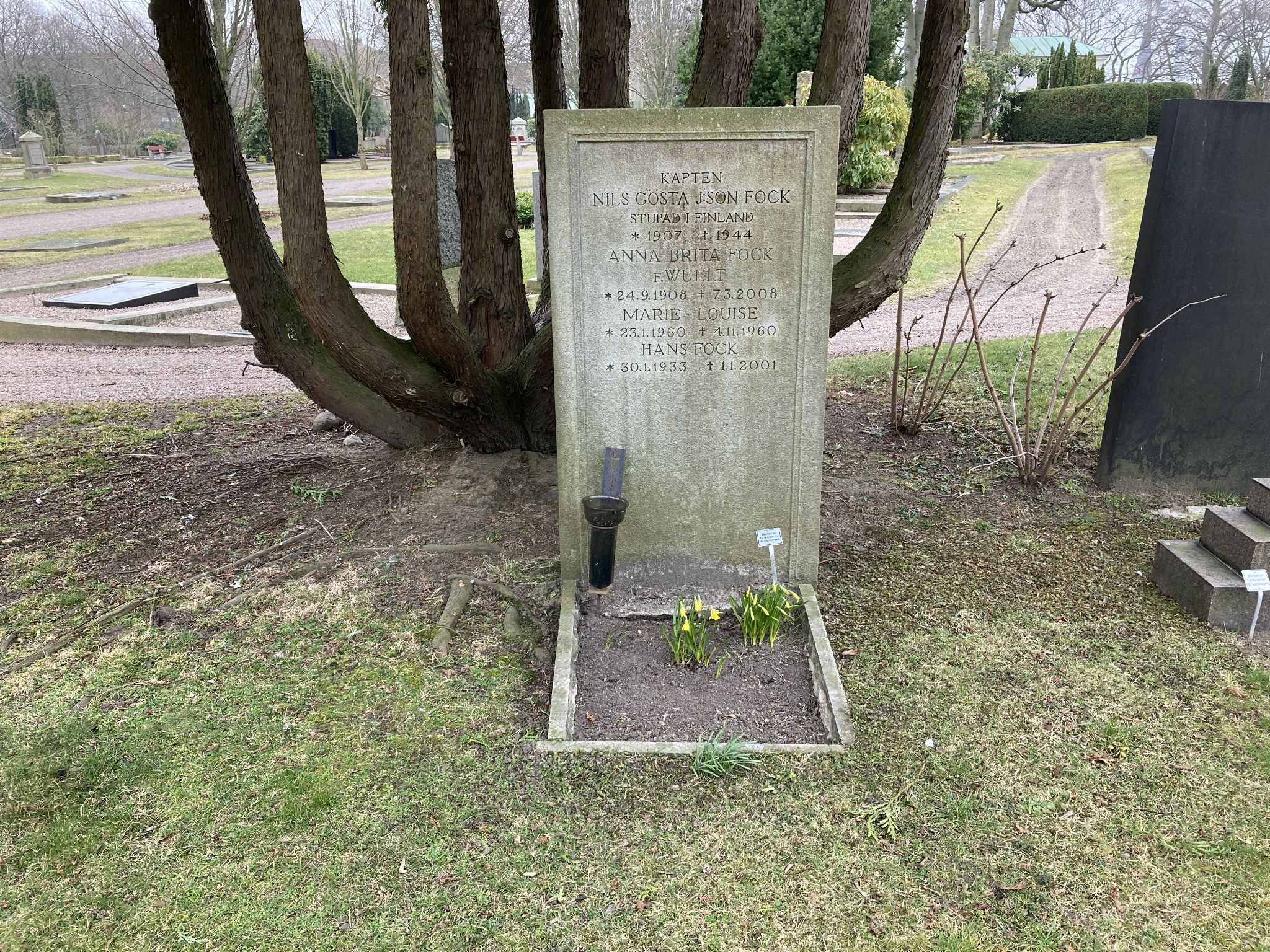 1944 Gravsten över finlandsfrivillige Gösta Fock på Donationskyrkogården, Helsingborg
