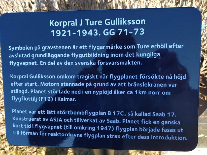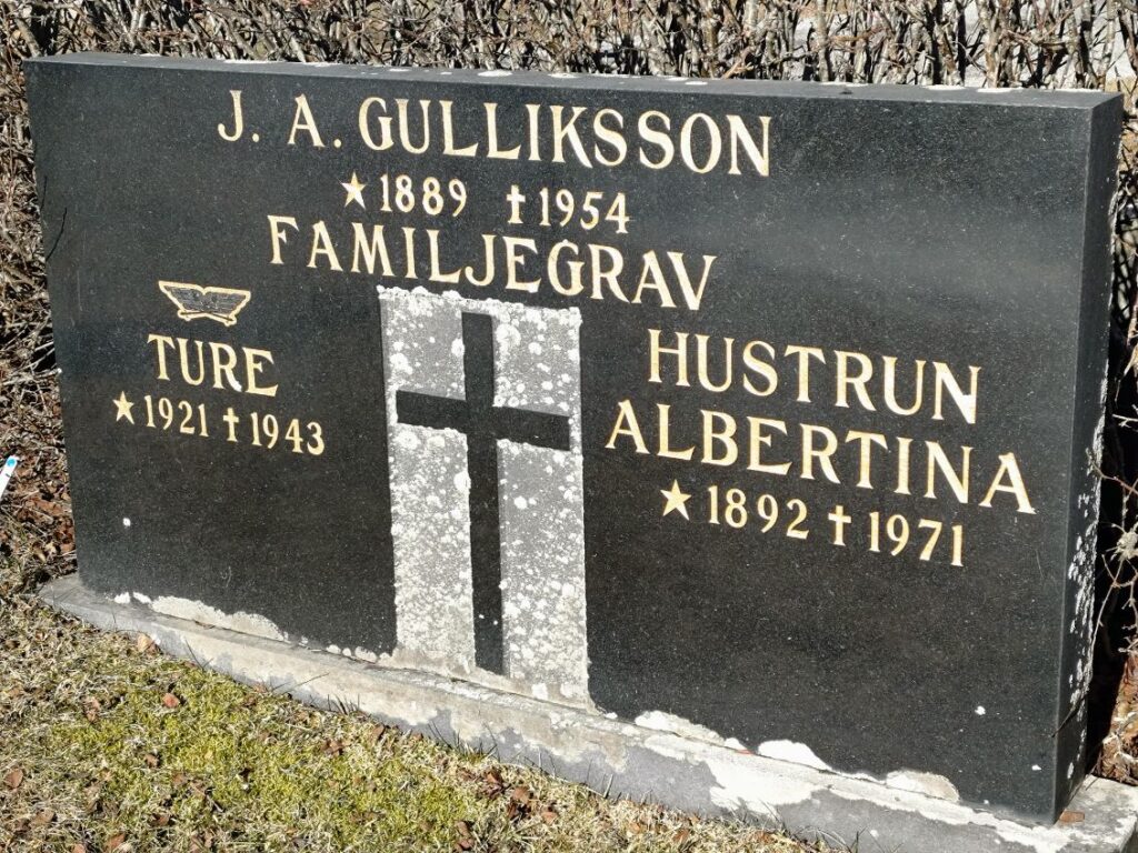 1943 Gravsten över flygkorpralen Ture Gulliksson på Anundsjö kyrkogård, Bredbyn